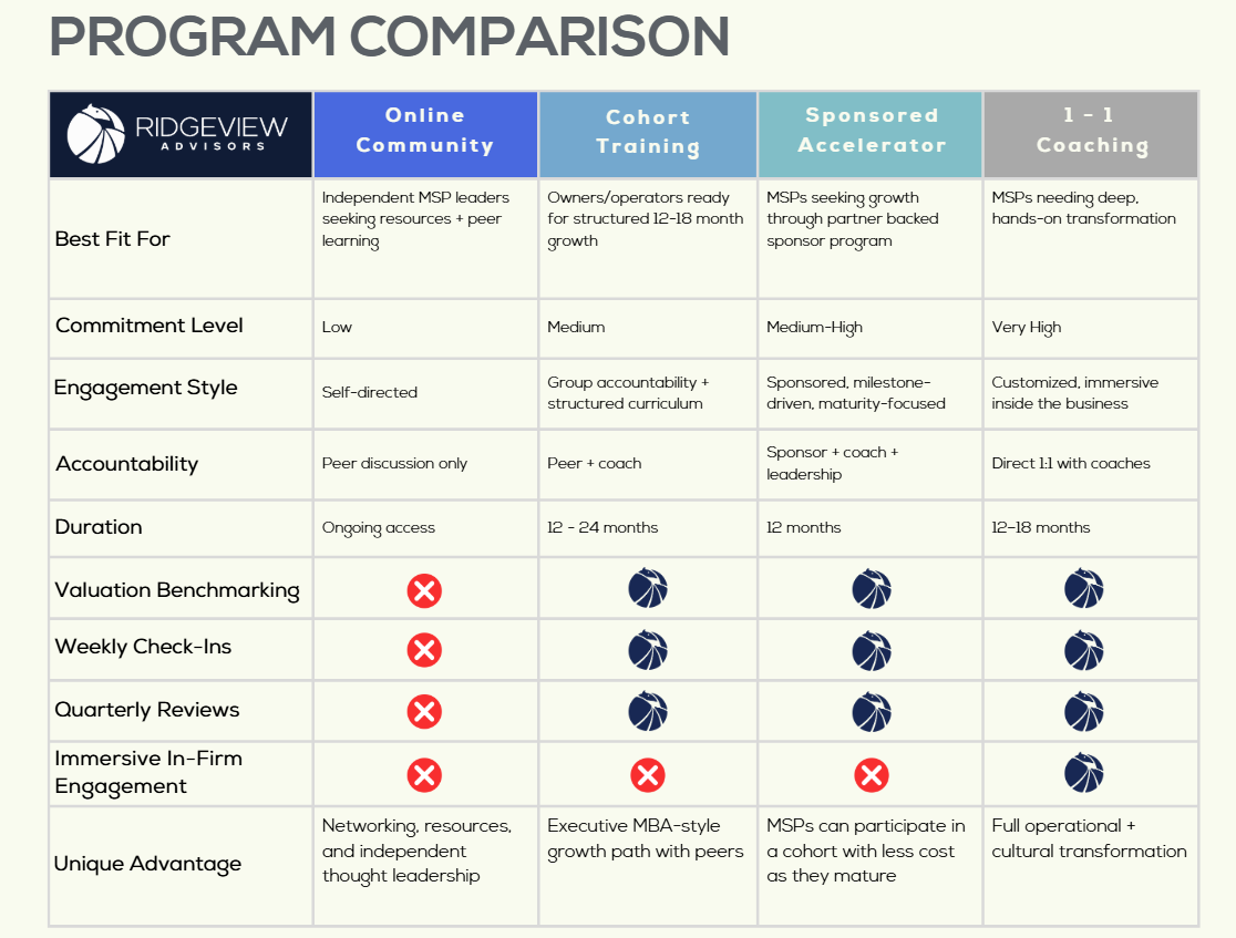 Take your M/A pipeline to the next level by offering to help your MSP targets transition smoothly, retain their talent and ensure their legacy. Investors will see higher ROI on capital outlay and closer alignment to pro forma with less risky MSPs. Put your marketing dollars to better use- invest them in your pipeline.